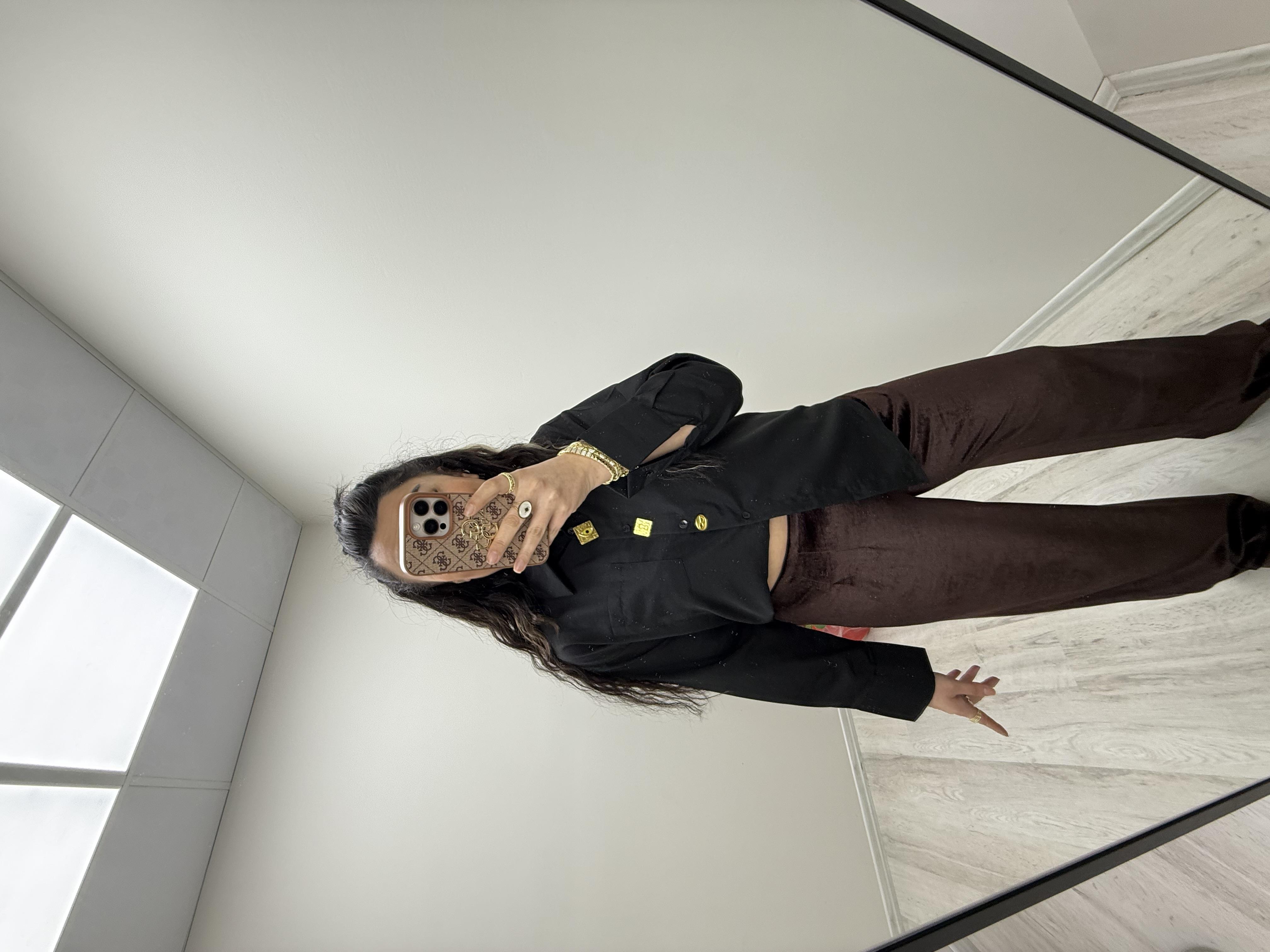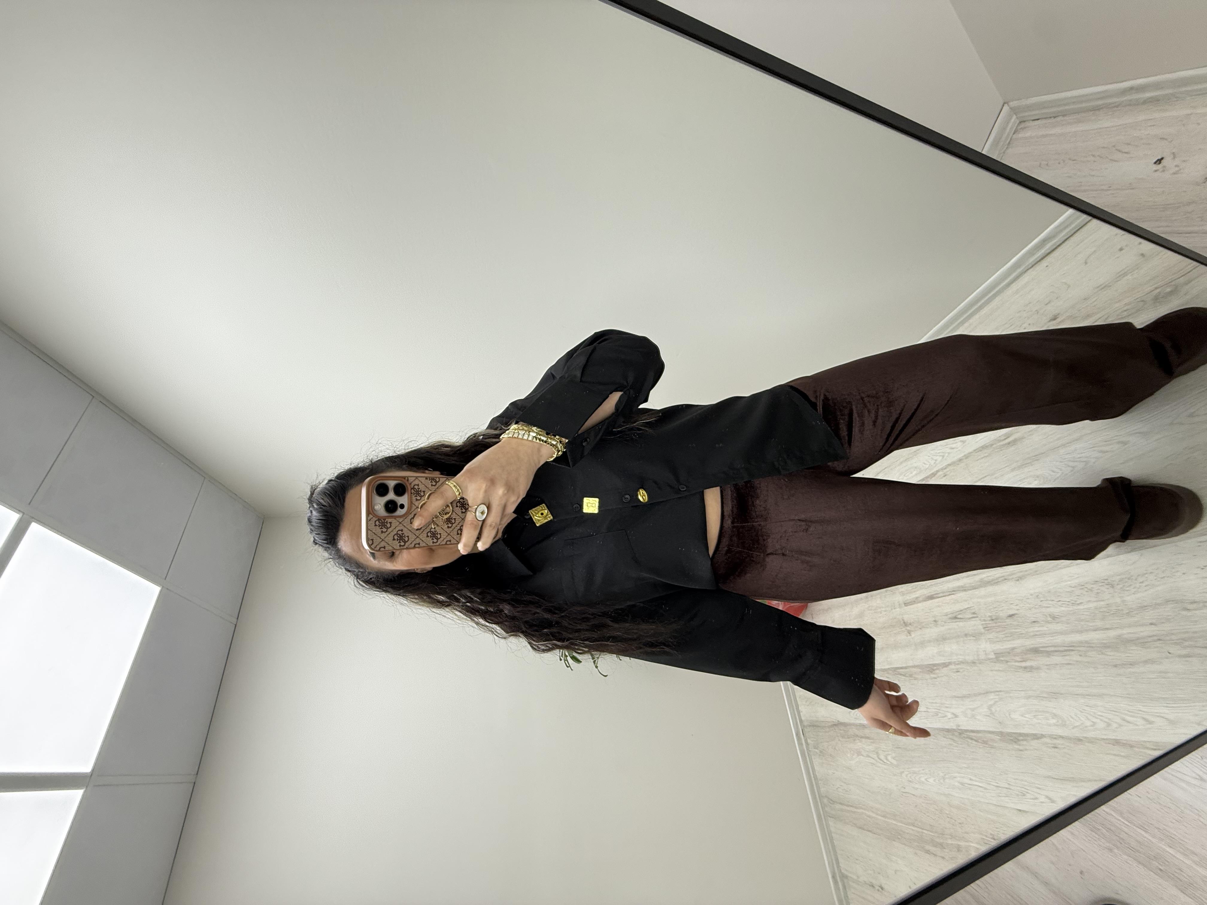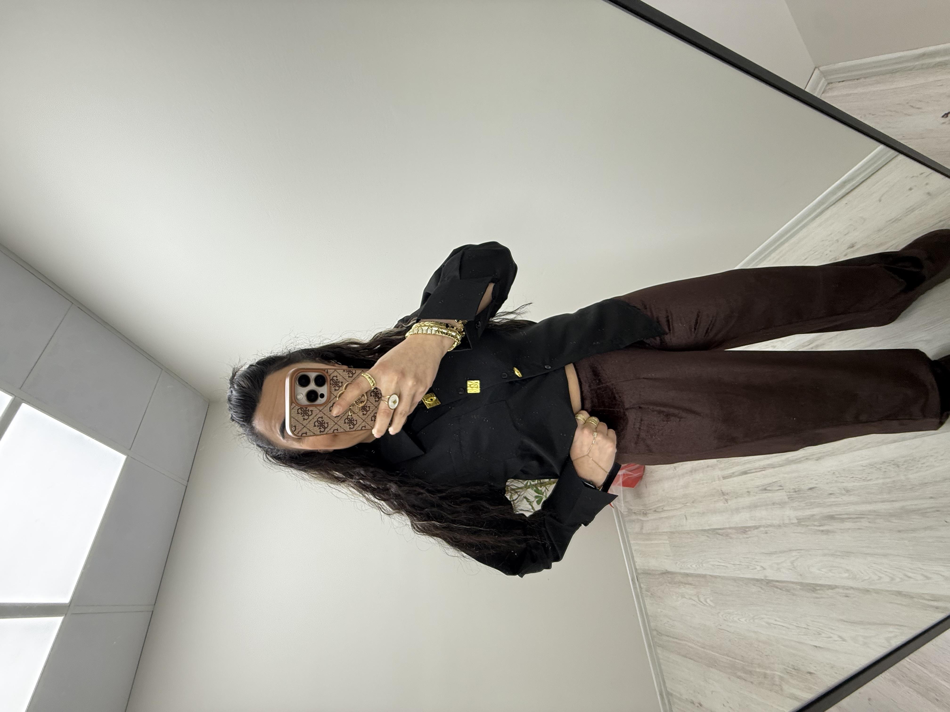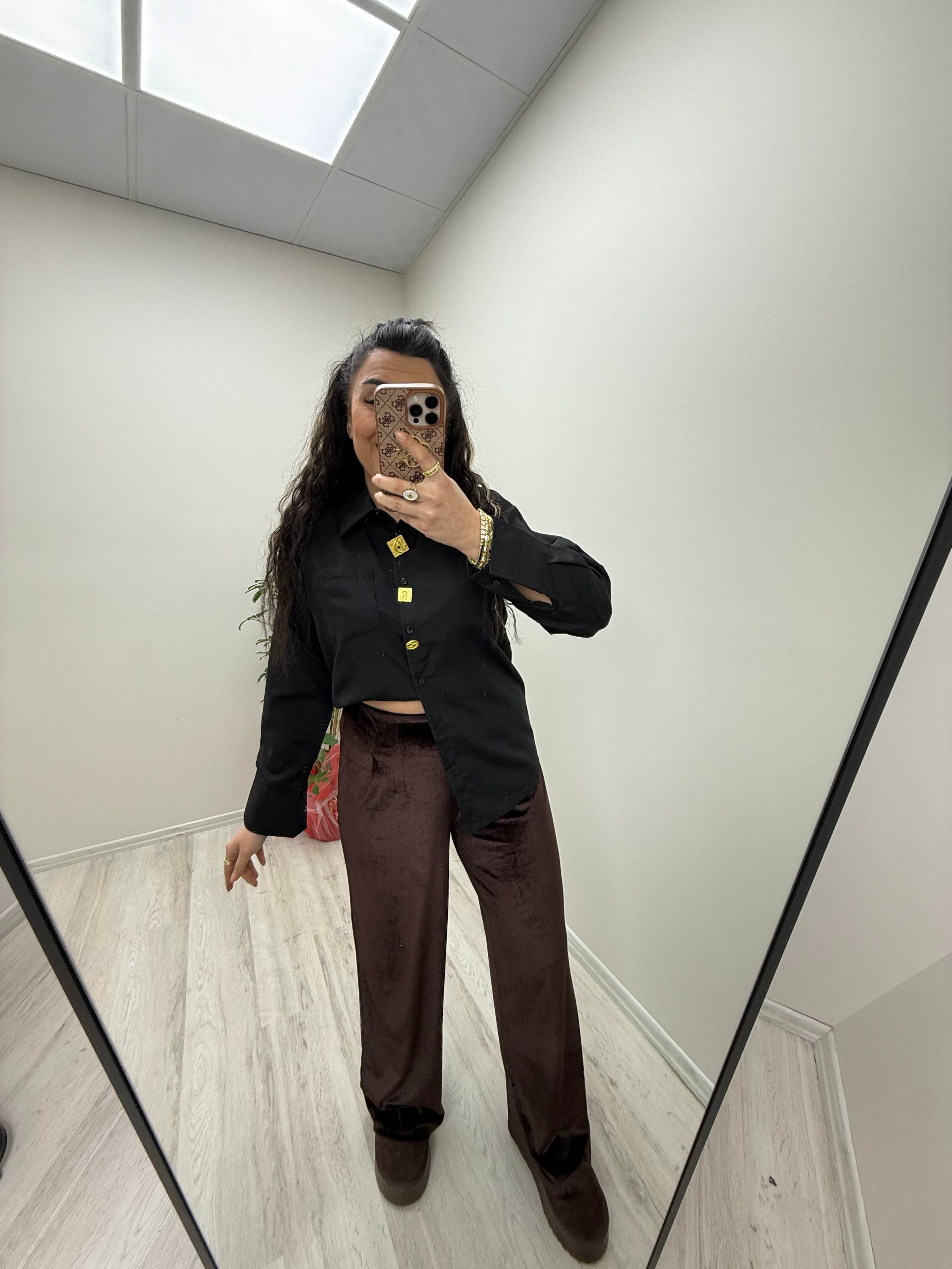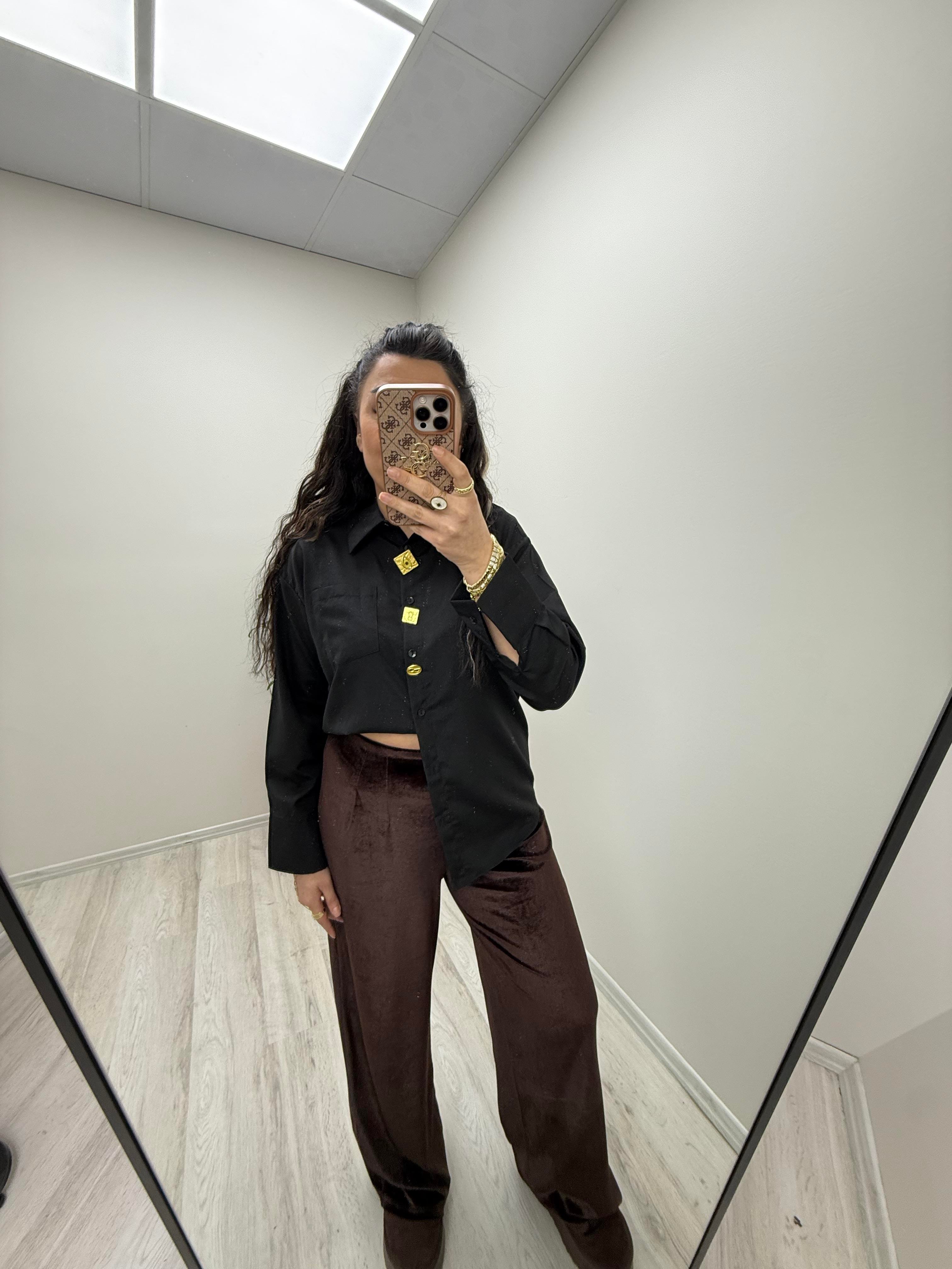 Broş Detaylı Siyah Gömlek